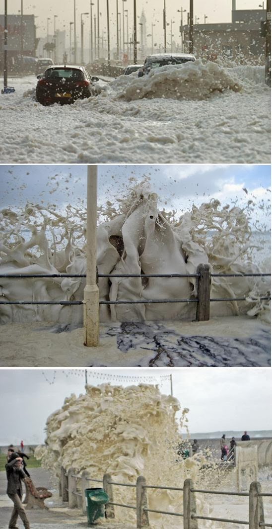 Pada Desember 2011, resor tepi laut Cleveleys, Lancashire diselimuti dengan busa yang menurut para ahli, berasal dari molekul lemak dan protein yang akibat penguraian makhluk laut kecil (phaeocystis).